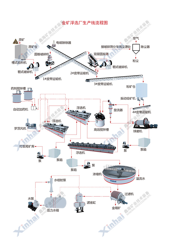 采用浮选法可以把金大限度地富集到硫化矿物精矿当中,便于尽早抛弃尾矿,降低选矿成本。此外,浮选法常用于处理多金属矿石,可实现对矿产资源的高效综合利用。