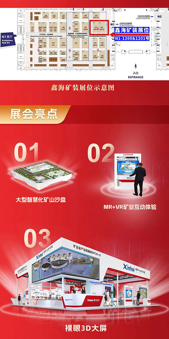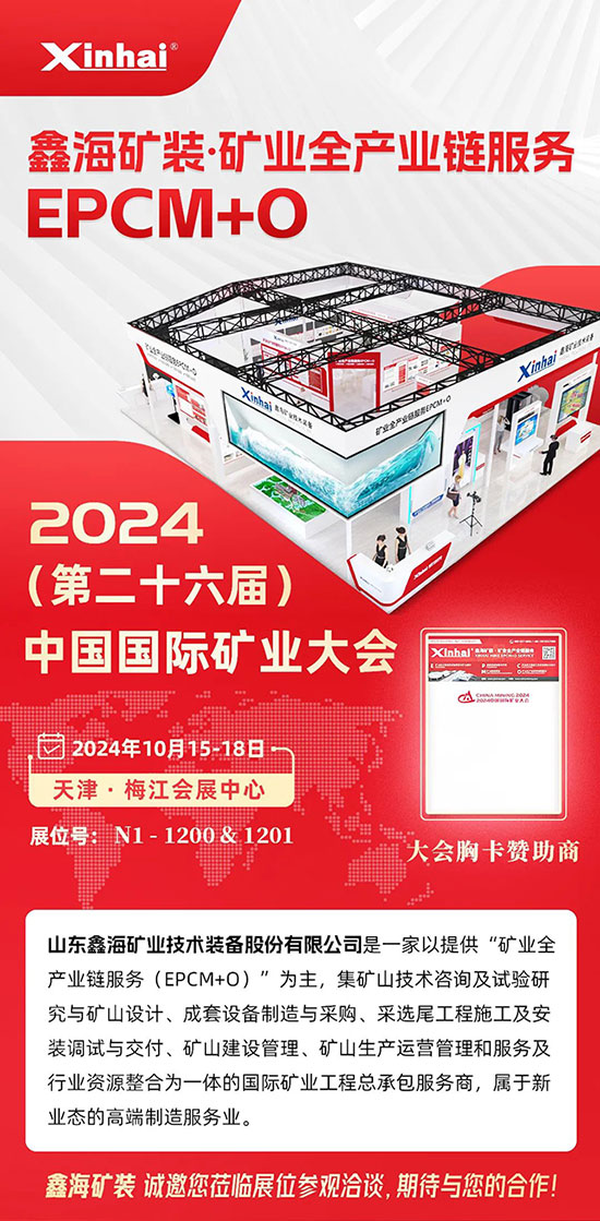 2024(第二十六届)中国国际矿业大会于10月15-18日,在天津梅江会展中心举行,作为此次大会胸牌赞助商,鑫海矿业特装展位(展位号:N1-1200&1201),全新姿态盛装亮相,敬请共襄盛会。