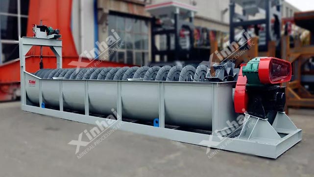 按螺旋轴数目,螺旋分级机可分为单螺旋和双螺旋。两者的分级性能基本相同,但双螺旋分级机在返砂处理能力、溢流处理能力、同规格螺旋直径等方面明显大于单螺旋分级机,且双螺旋分级机价格也是远高于单螺旋分级机,所以更适合于大型磨矿机配合使用。